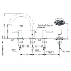 - Lắp đặt: Gắn thành bồn tắm 4 lỗ.