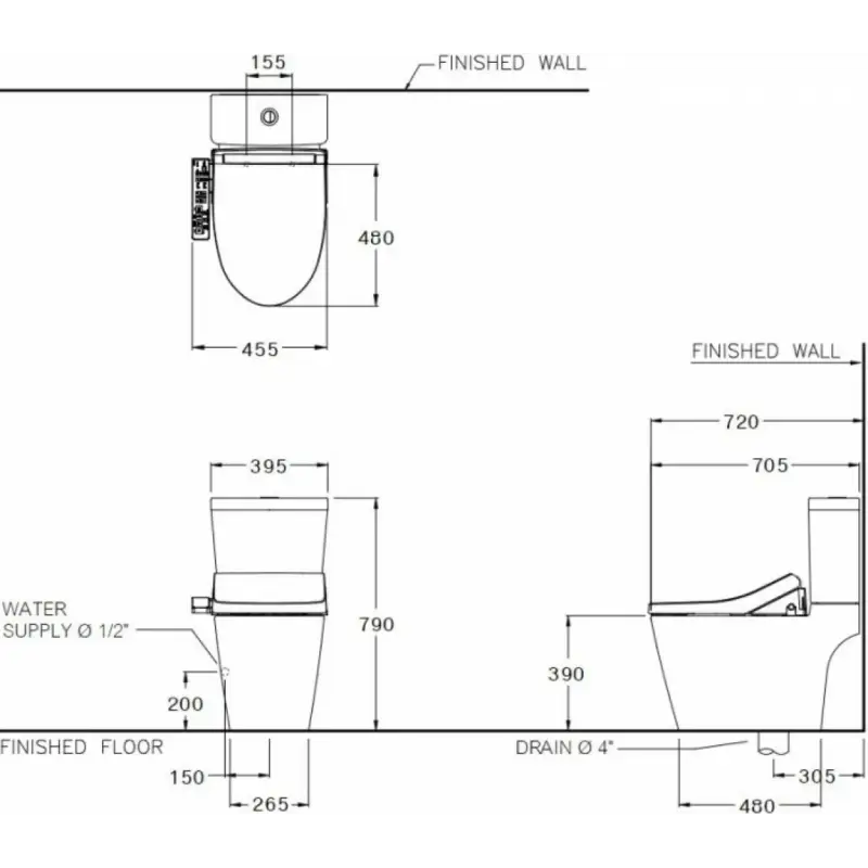 - Kích thước: 455 x 720 x 702 mm (Xem chi tiết ở phần hướng dẫn lắp đặt).