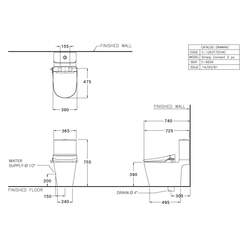 Bàn cầu COTTO C125317(CV4) nắp điện tử Simply Connect