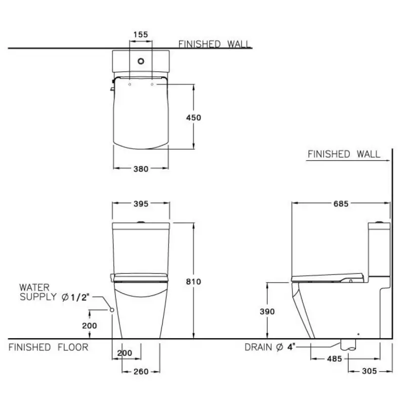 - Kích thước: 395 x 685 x 810 mm (Xem chi tiết ở phần hướng dẫn lắp đặt).