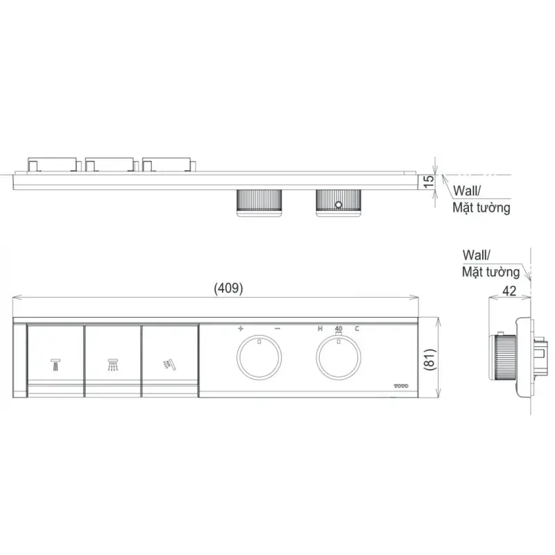 - Vận hành trực quan và hiện đại: Củ sen tắm âm tường Toto thiết kế các nút nhấn chọn chế độ tắm (bát sen hoặc tay sen) được ký hiệu rõ ràng, cho phép người dùng chuyển đổi nguồn nước chỉ bằng một thao tác nhẹ nhàng.