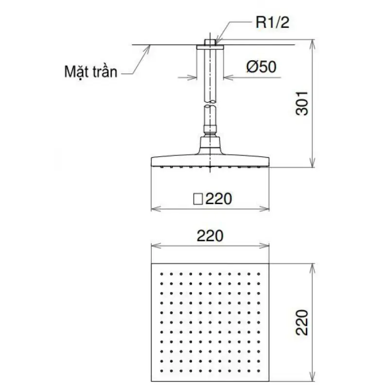 Bát sen gắn trần TOTO DB144-1CR vuông 220mm