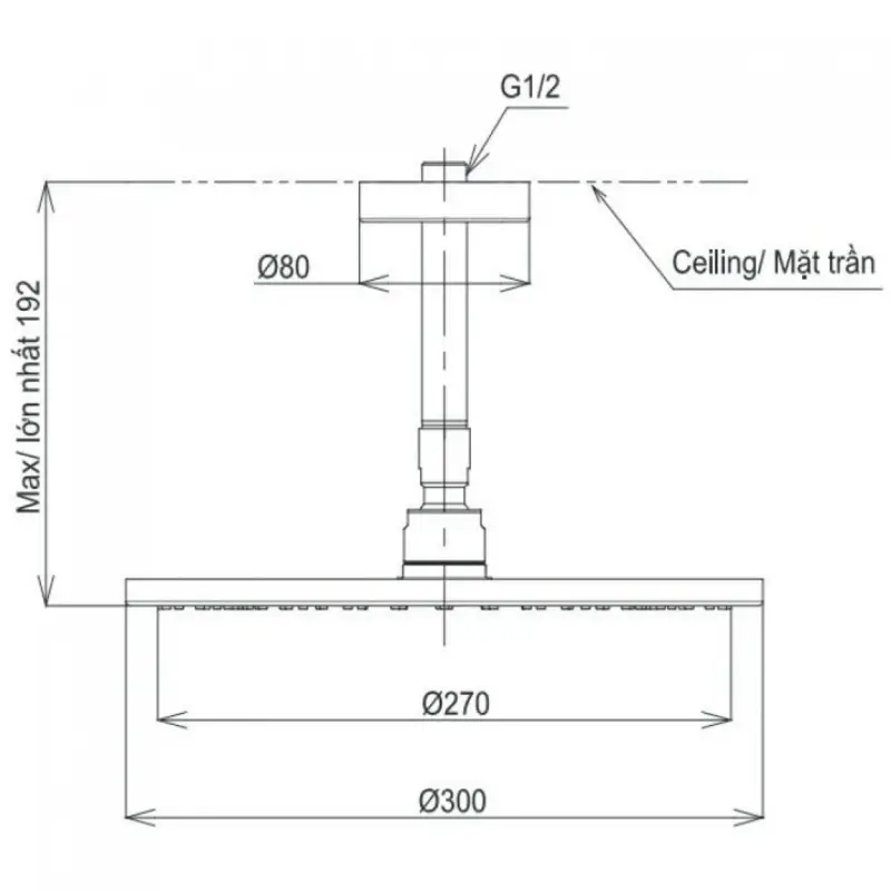 - Kích thước: 300mm (Xem chi tiết ở phần hướng dẫn lắp đặt).