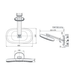 - Kích thước: 400×230 mm (Xem chi tiết ở phần hướng dẫn lắp đặt).