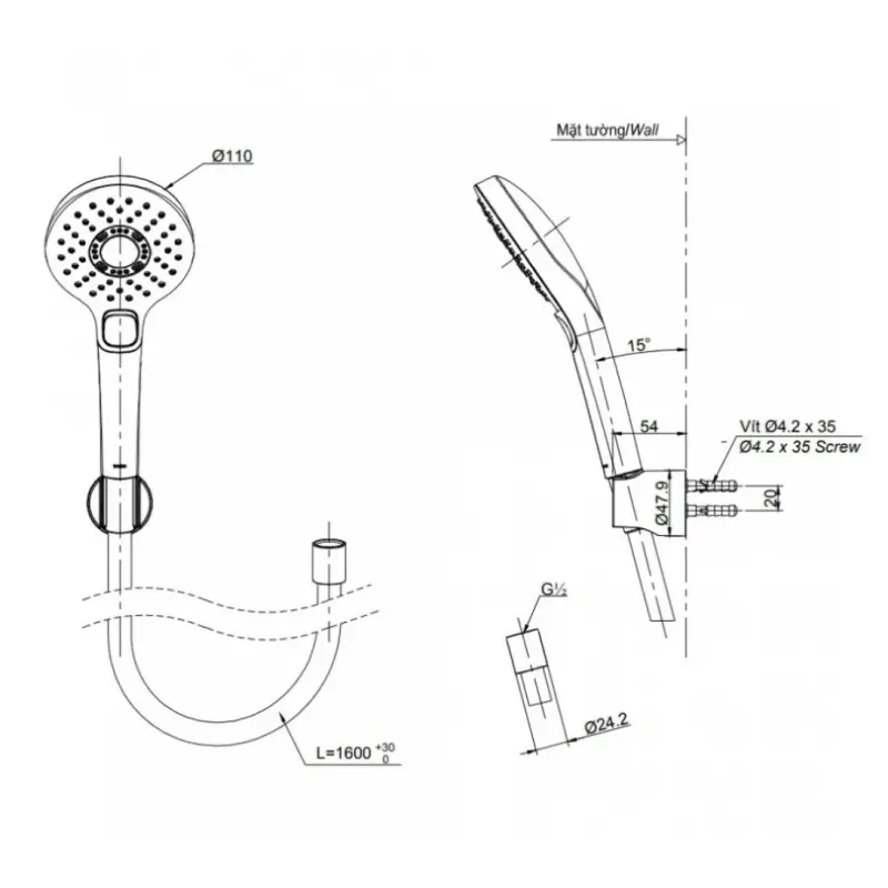 - Bao gồm gác sen, không bao gồm cút nối tường.