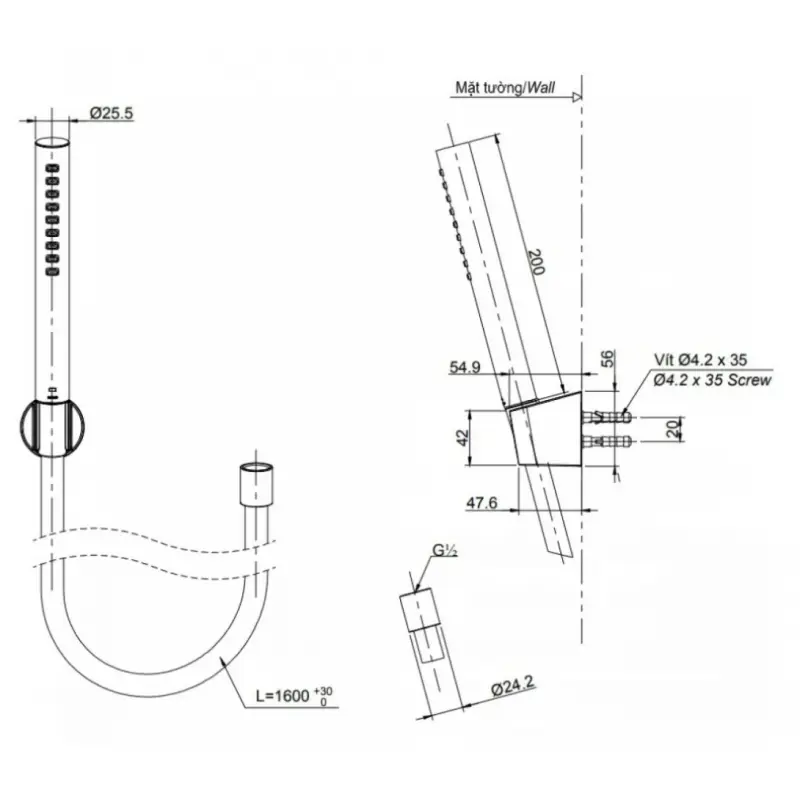 - Bao gồm gác sen, không bao gồm cút nối tường.