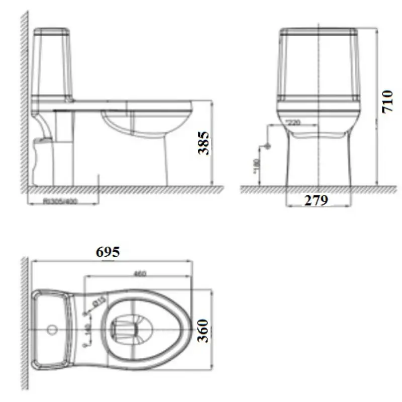 - Kích thước: 695x360x710mm (Xem chi tiết ở phần hướng dẫn lắp đặt).