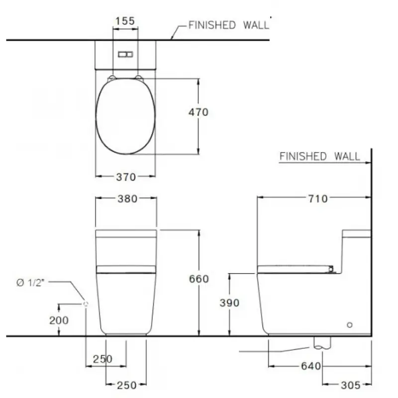 - Kích thước: 710 x 380 x 660 mm (Xem chi tiết ở phần hướng dẫn lắp đặt).