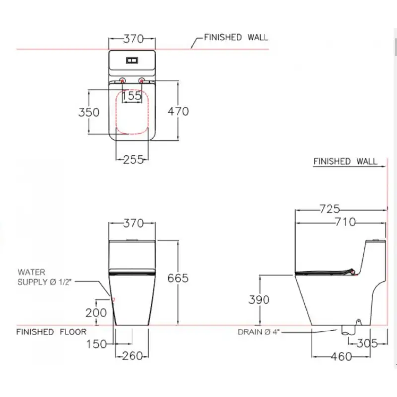 - Kích thước: 710 x 370 x 665 mm (Xem chi tiết ở phần hướng dẫn lắp đặt).