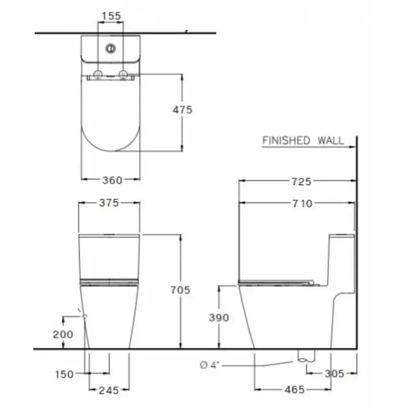 - Kích thước: 710 x 375 x 705 mm (Xem chi tiết ở phần hướng dẫn lắp đặt).