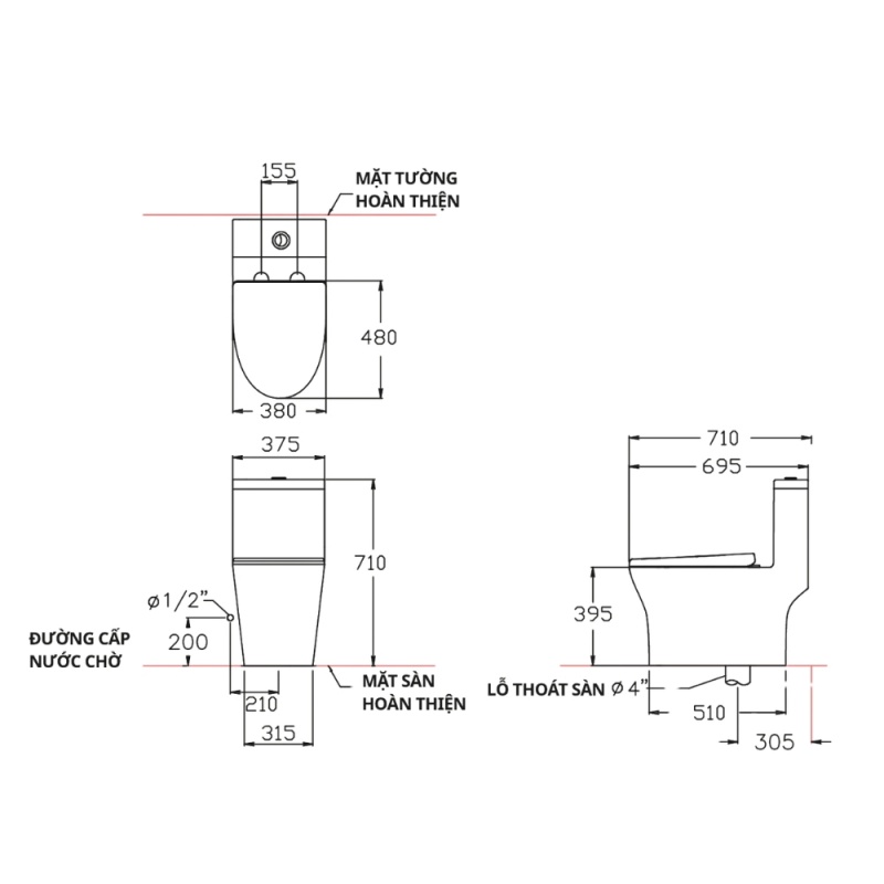 - Kích thước: 710 x 375 x 710 mm (Xem chi tiết ở phần hướng dẫn lắp đặt).