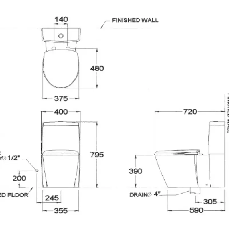 - Kích thước: 400 x 720 x 795 mm (Xem chi tiết ở phần hướng dẫn lắp đặt).