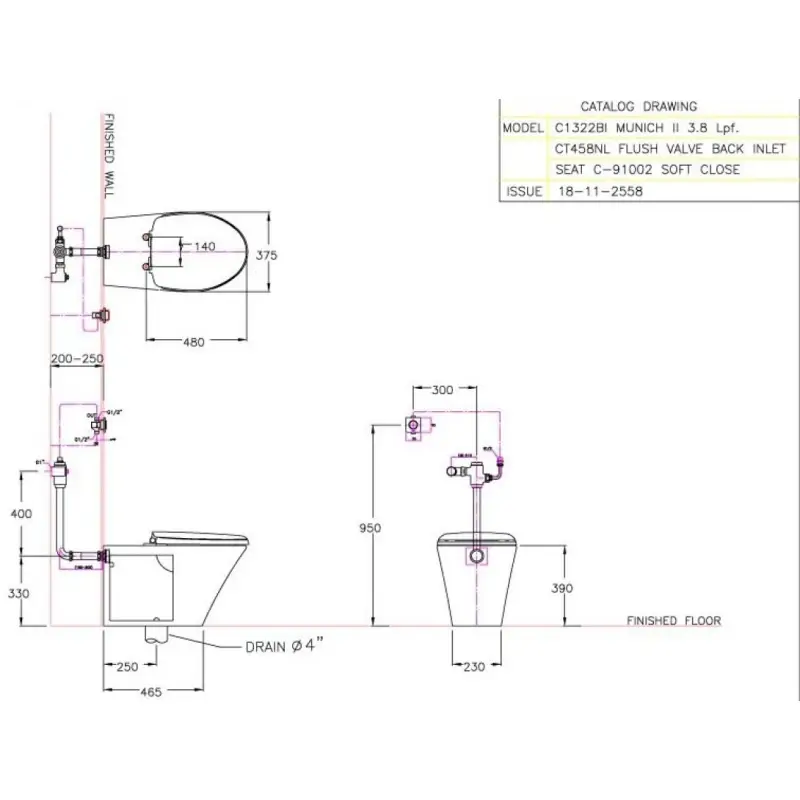 Bồn cầu COTTO C1322BI Munich II dùng van xả trực tiếp