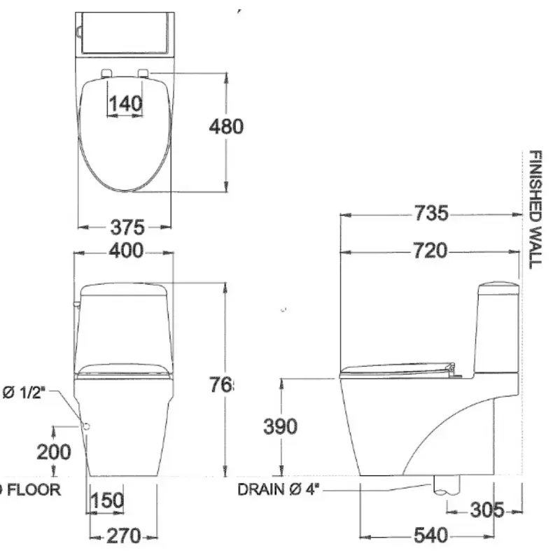 - Kích thước: 460 x 720 x 765 mm (Xem chi tiết ở phần hướng dẫn lắp đặt).