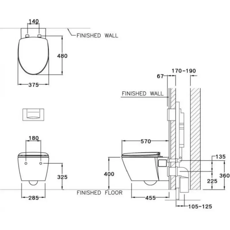 - Điều chỉnh độ cao linh hoạt: Khác với bồn cầu đặt sàn, dòng treo tường cho phép tùy chỉnh độ cao lắp đặt phù hợp với vóc dáng của gia chủ trong lúc thi công.