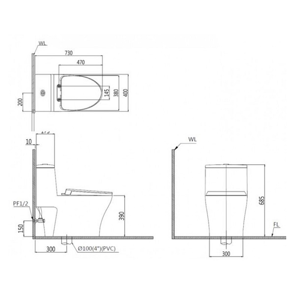 Kích thước: 730 x 400 x 685 mm (DxRxC)