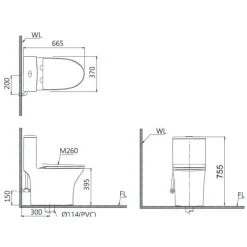 - Kích thước: 665 x 370 x 755 mm