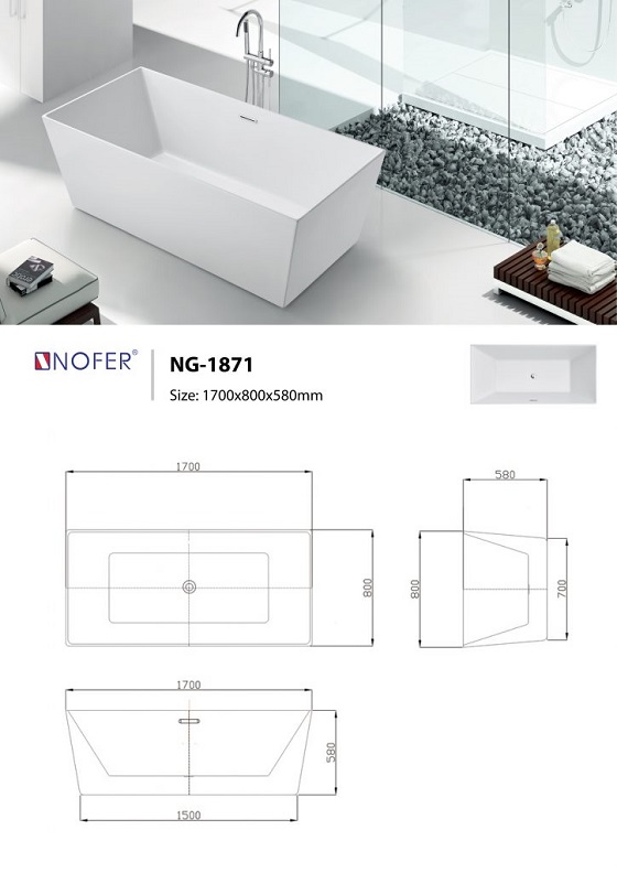 Bồn tắm NG-1871 dành cho những bạn đang tìm kiếm chiếc bồn tắm thông thường phục vụ nhu cầu cơ bản của mình.