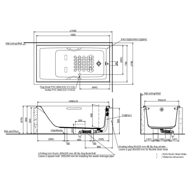- Mọi thông số kỹ thuật bồn tắm xây Toto PAY1520HV hiện đại mang tính khách quan có thể có sai số của công cụ đo lường.