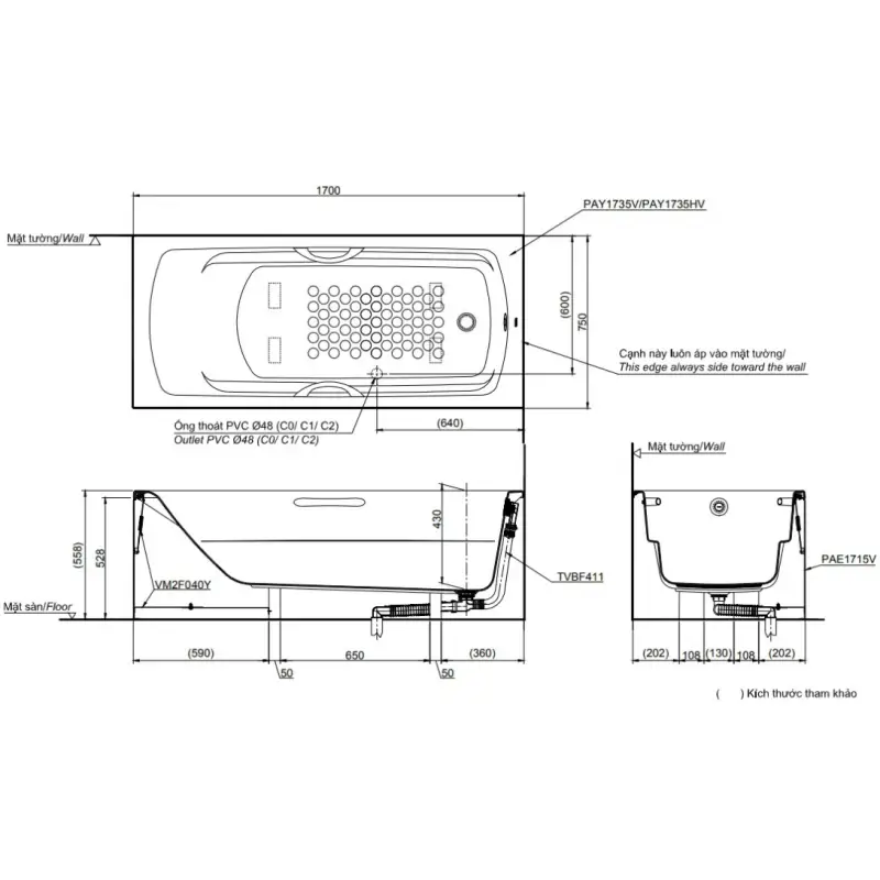 - Mọi thông số kỹ thuật bồn tắm Toto PAY1735HVC chân yếm mang tính khách quan có thể có sai số của công cụ đo lường.
