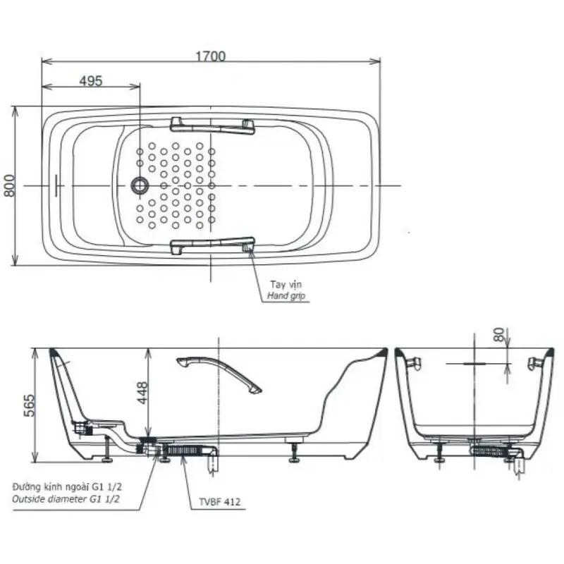 Bồn tắm TOTO PJY1724HPWEN#GW đá cẩm thạch 1.7M