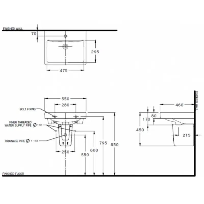 - Che bộ xả tinh tế, thẩm mỹ: Phần chân lửng bao bọc gọn gàng phần xi-phông (bộ xả) bên dưới chậu, loại bỏ sự rườm rà của đường ống nước lộ thiên, mang lại vẻ đẹp hiện đại và chỉn chu cho không gian.