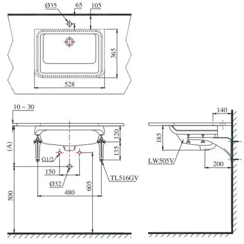 Thông Số Kỹ Thuật Chi Tiết Của Chậu Lavabo Toto LT505T: