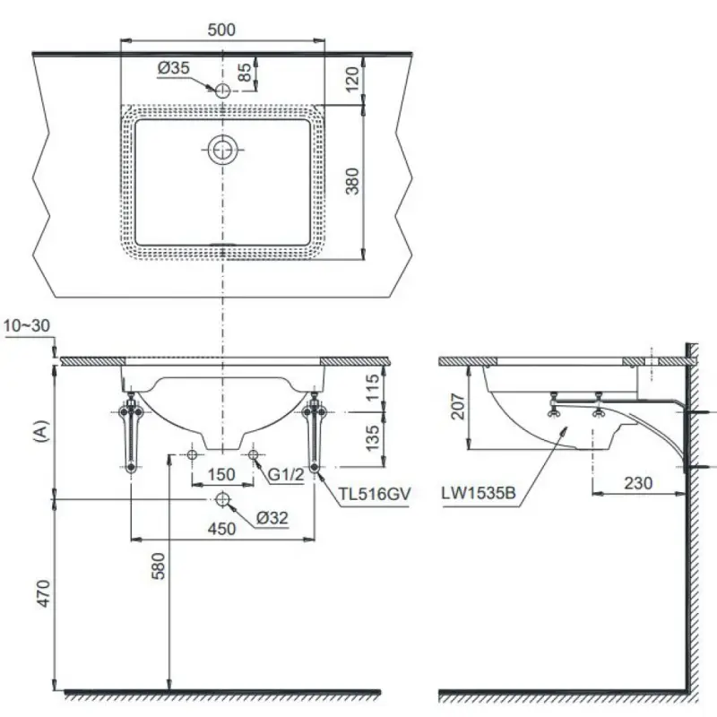 Chậu lavabo TOTO LW1535V#XW âm bàn