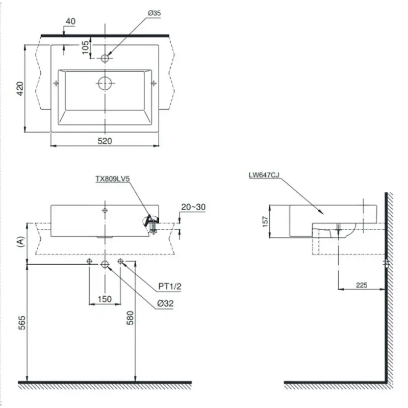 Thông Số Kỹ Thuật Chi Tiết Của Chậu Lavabo Toto LW647CJW: