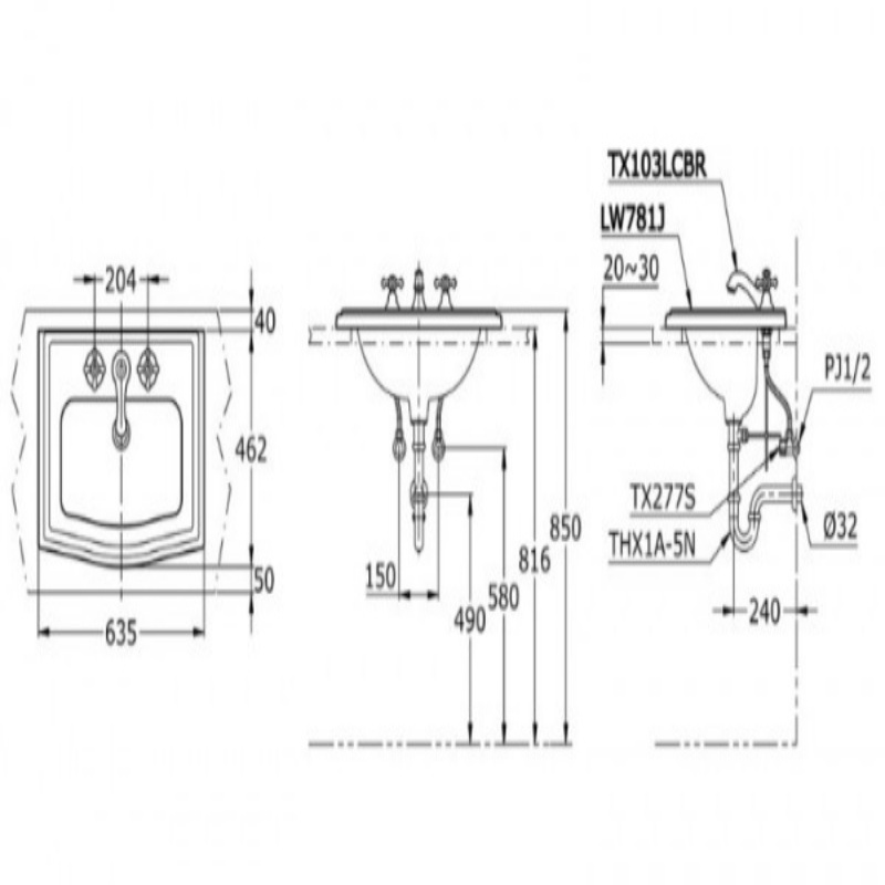 Thông Số Kỹ Thuật Chi Tiết Của Chậu Lavabo Toto LW781J:
