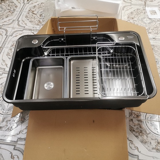 Chậu thiết kế hiện đại, rửa thực phẩm cực kỳ tiện lợi, sạch sẽ.