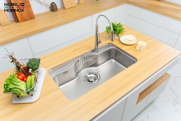 Thiết kế chậu 1 hố với phong cách Nhật mang đường nét mềm mại và thanh lịch, phù hợp với mọi không gian bếp.