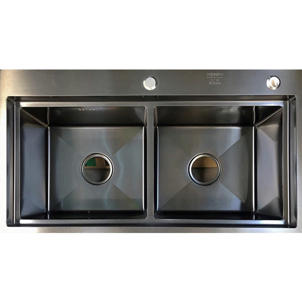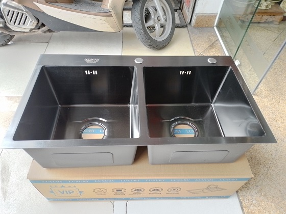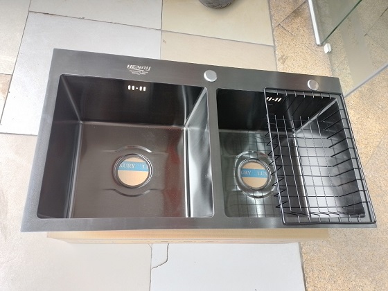 Chậu rửa 2 hố cân, giật cấp, có rổ úp bát đa năng kèm theo