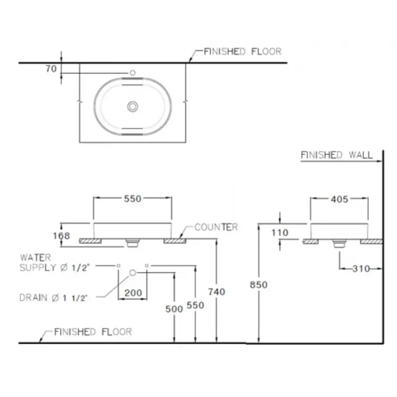 Chậu rửa mặt COTTO C003437 đặt bàn Sensation Capsule