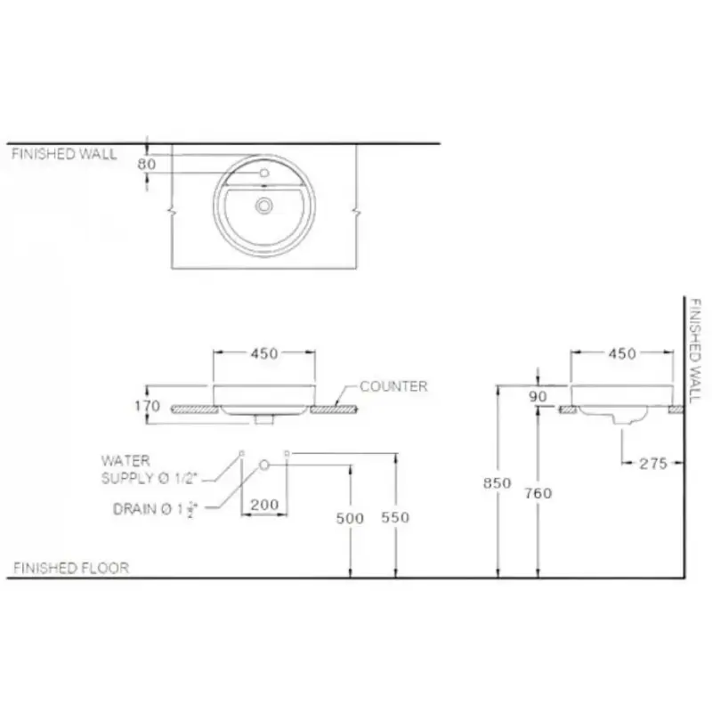 - Kích thước: 450 x 450 x 170 mm (Xem chi tiết ở phần hướng dẫn lắp đặt).