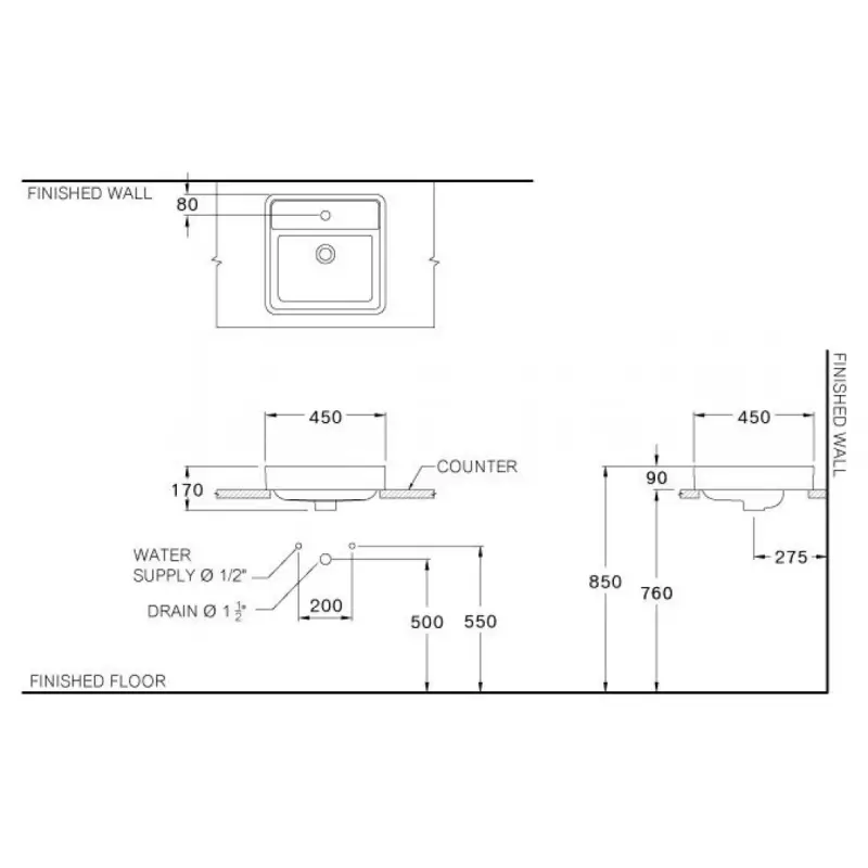 - Kích thước: 450 x 450 x 170mm mm (Xem chi tiết ở phần hướng dẫn lắp đặt).