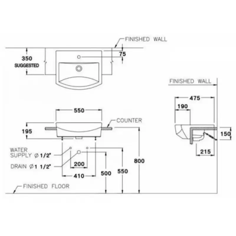 Chậu rửa mặt COTTO C02427 Tetragon bán âm bàn