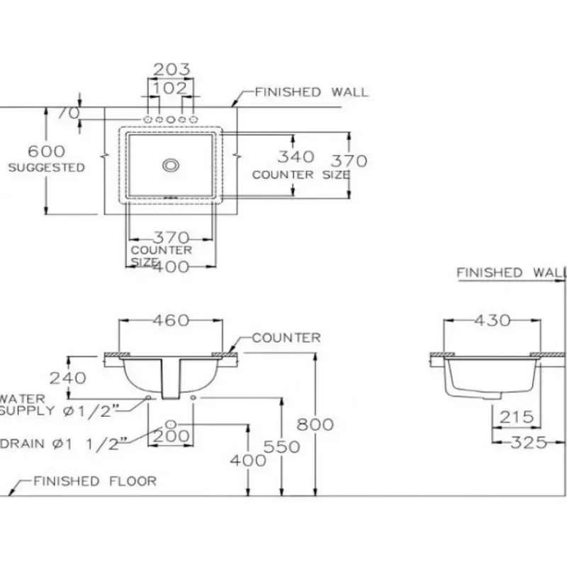 - Không bao gồm giá đỡ chậu, bộ xả, vòi.
