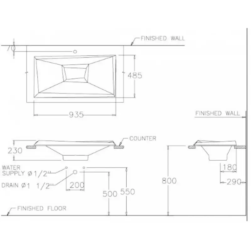 - Kích thước: 935 x 485 x 230 mm (Xem chi tiết ở phần hướng dẫn lắp đặt).