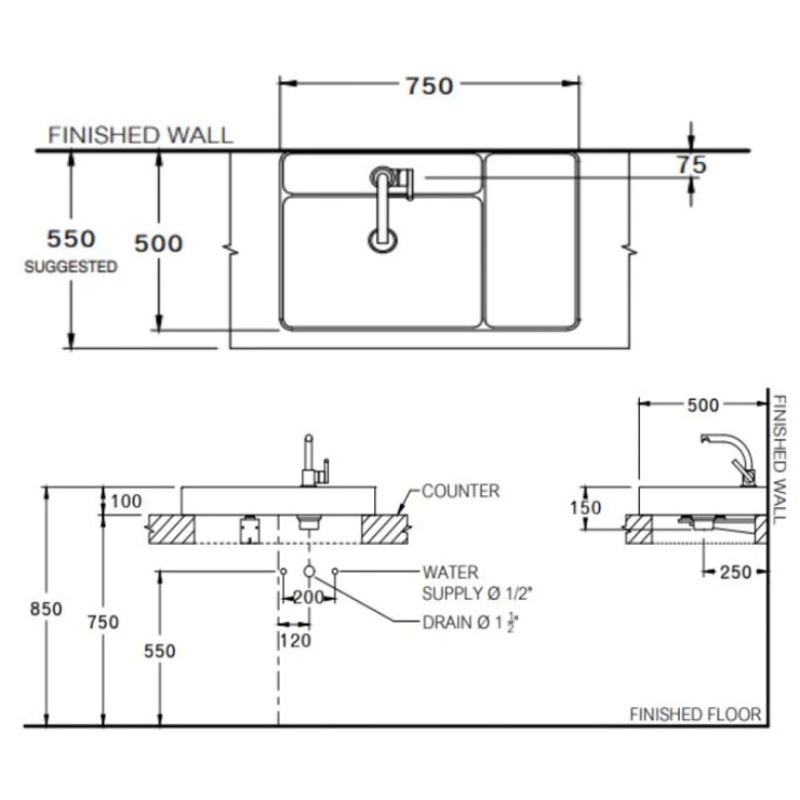 - Vận hành êm ái: Lòng chậu sâu hạn chế bắn nước, giữ khu vực rửa luôn khô ráo.