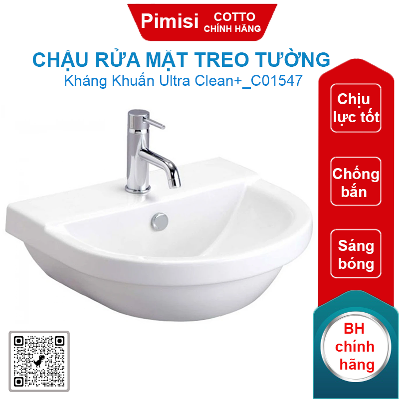 - Mọi thông số kỹ thuật chậu rửa mặt kháng khuẩn Cotto C01547 mang tính khách quan có thể có sai số của công cụ đo lường.
