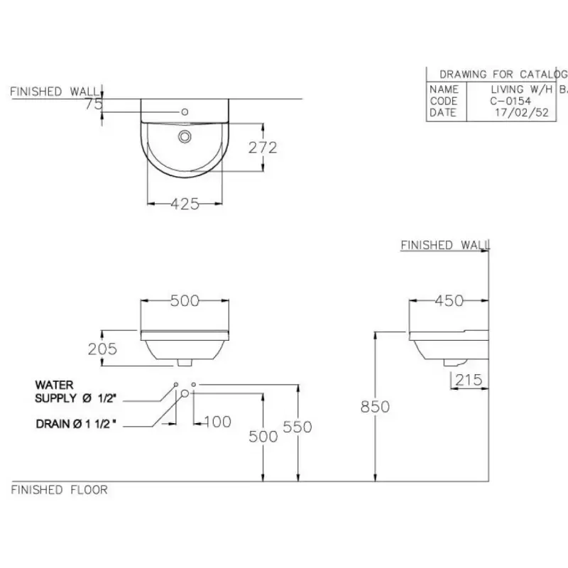 Thông Số Kỹ Thuật Chi Tiết Của Chậu Rửa Mặt Treo Tường Cotto C01547: