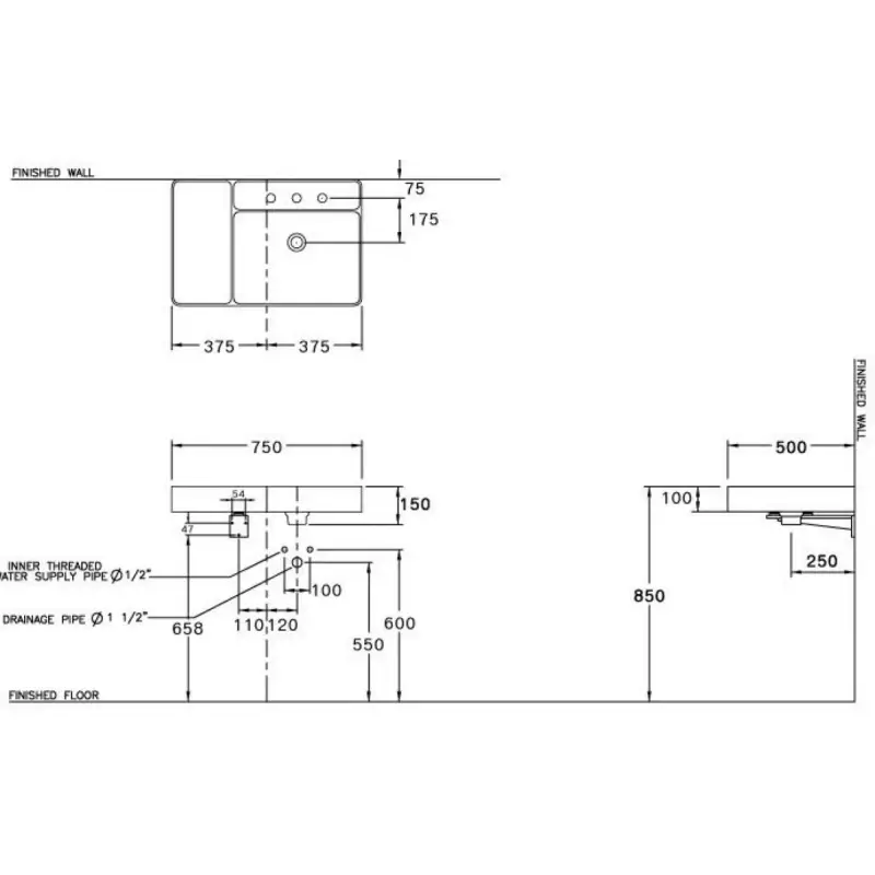 - Kích thước: 500 x 750 x 100 mm (Xem chi tiết ở phần hướng dẫn lắp đặt).