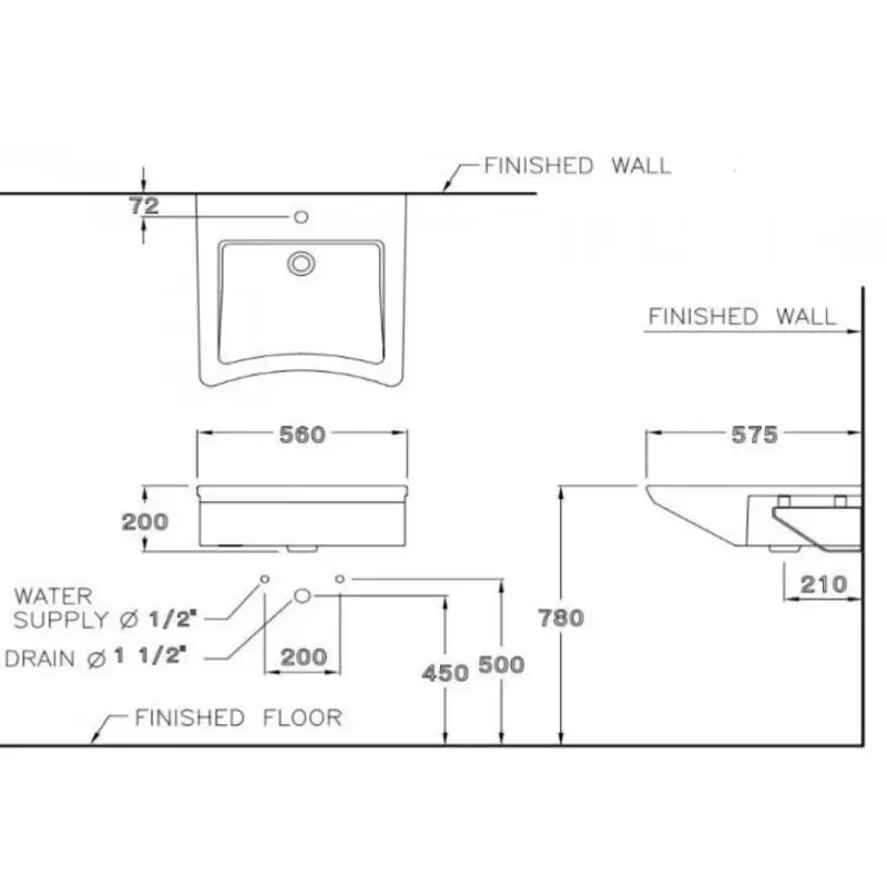 - Kích thước: 560 x 575 x 700 mm (Xem chi tiết ở phần hướng dẫn lắp đặt).