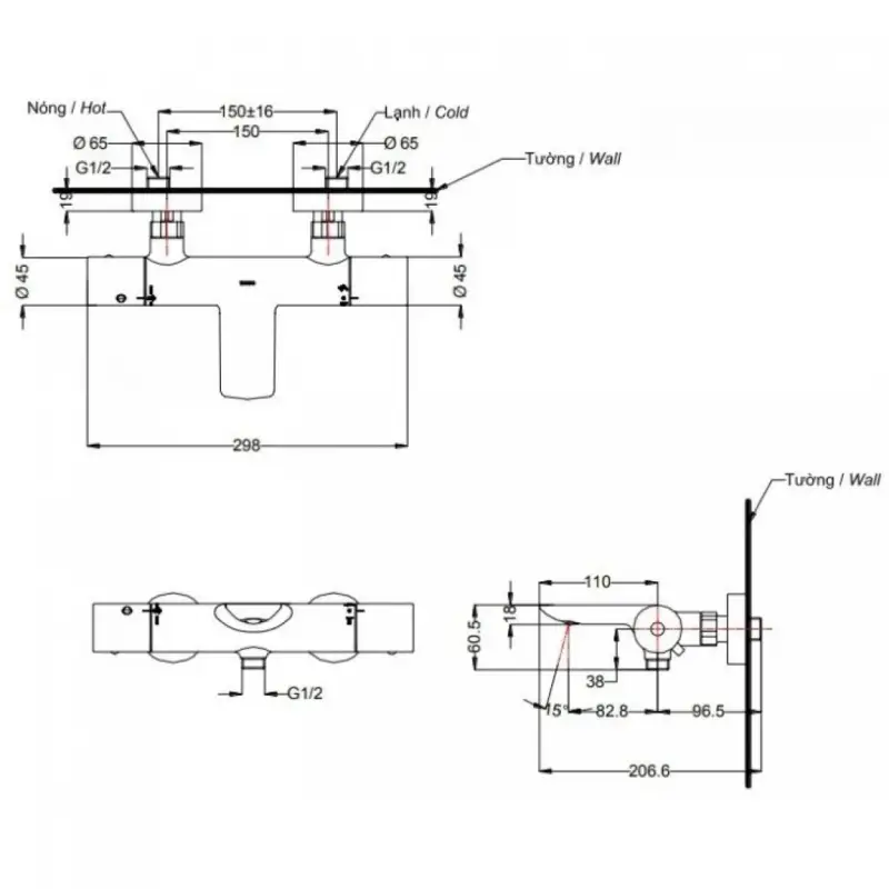 - Kích thước: (Xem chi tiết ở phần hướng dẫn lắp đặt).