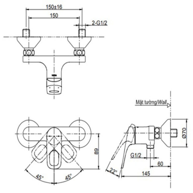 - Lắp đặt: Gắn tường.