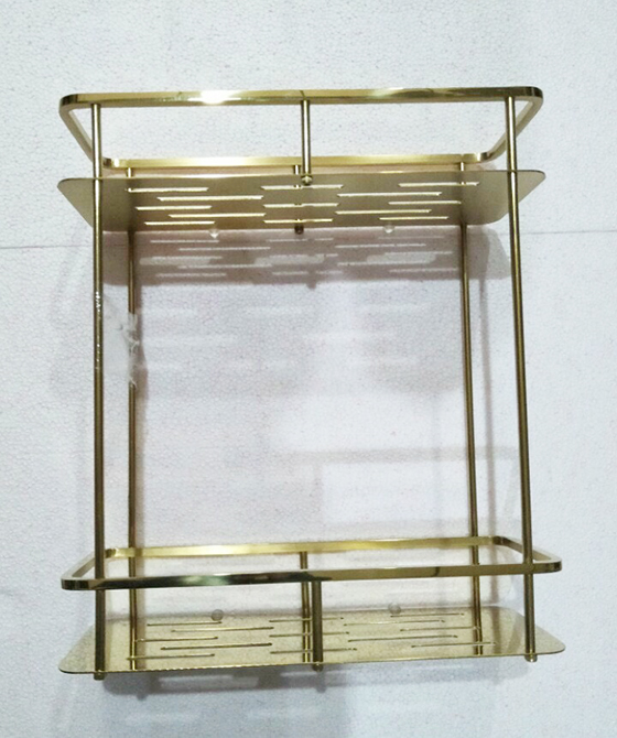 Kệ góc đựng dầu gội treo tường màu vàng hồng Rose Gold 2 tầng Miken AL-PH30