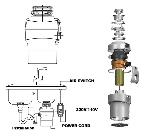 Rác thải hữu cơ được nghiền nát, sau đó được thải ra ngoài qua hệ thống ống xả