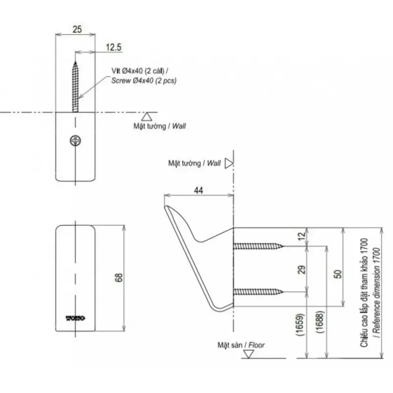 Thông Số Kỹ Thuật Chi Tiết Của Móc Áo Toto YRH902VV1#PFG:
