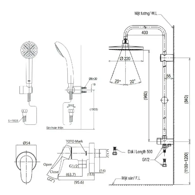 Hướng Dẫn Lắp Đặt Sen Cây Toto DM907CS – TBS04101RV – DGH104ZR Đồng Thau: